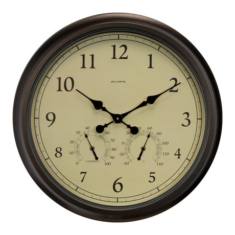 24" Outdoor/Indoor Wall Clock with Thermometer and Humidity, Weathered Bronze Finish